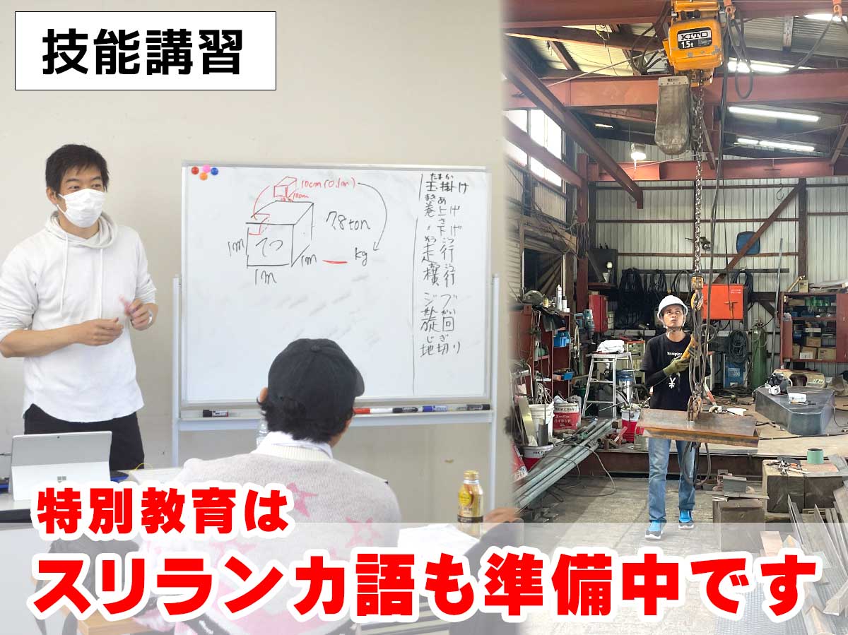 当センターでは、外国人労働者向けの技能講習(玉掛け・ガス溶接・高所作業車運転・車両系建設機械運転)を行っており、特別教育も行っております。