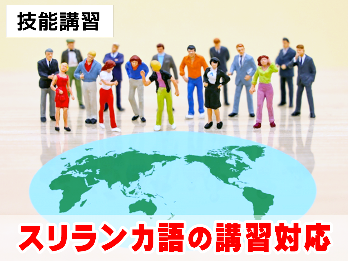 当センターでは、外国人労働者向けの技能講習(玉掛け・ガス溶接・高所作業車運転・車両系建設機械運転)や特別教育を行っています。受講可能言語は、英語、インドネシア語、ミャンマー語、 ベトナム語、カンボジア語、タイ語など幅広く対応しております。最近ではスリランカ語は対応していますか?という質問も多く寄せられています。当センターでは現在、玉掛けとガス溶接につきましては、スリランカ語の講習も行っております。