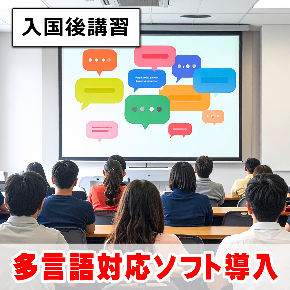 入国後講習は基本的に日本語で行われますが、細かなニュアンスが伝わるように通訳も入ります。日本語の声と通訳の声が混ざると聞き取りずらい場合もありますので、10月から新たな取り組みとして「多言語翻訳ソフト」を導入を導入しました。