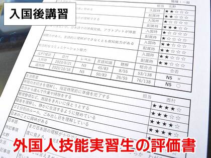 監理団体様が実習生のことを把握できるように、当センターでは、入国後研修後に実習生の評価書を提出しています。