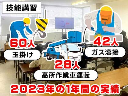 技能講習(玉掛け・ガス溶接・高所作業車運転)や、